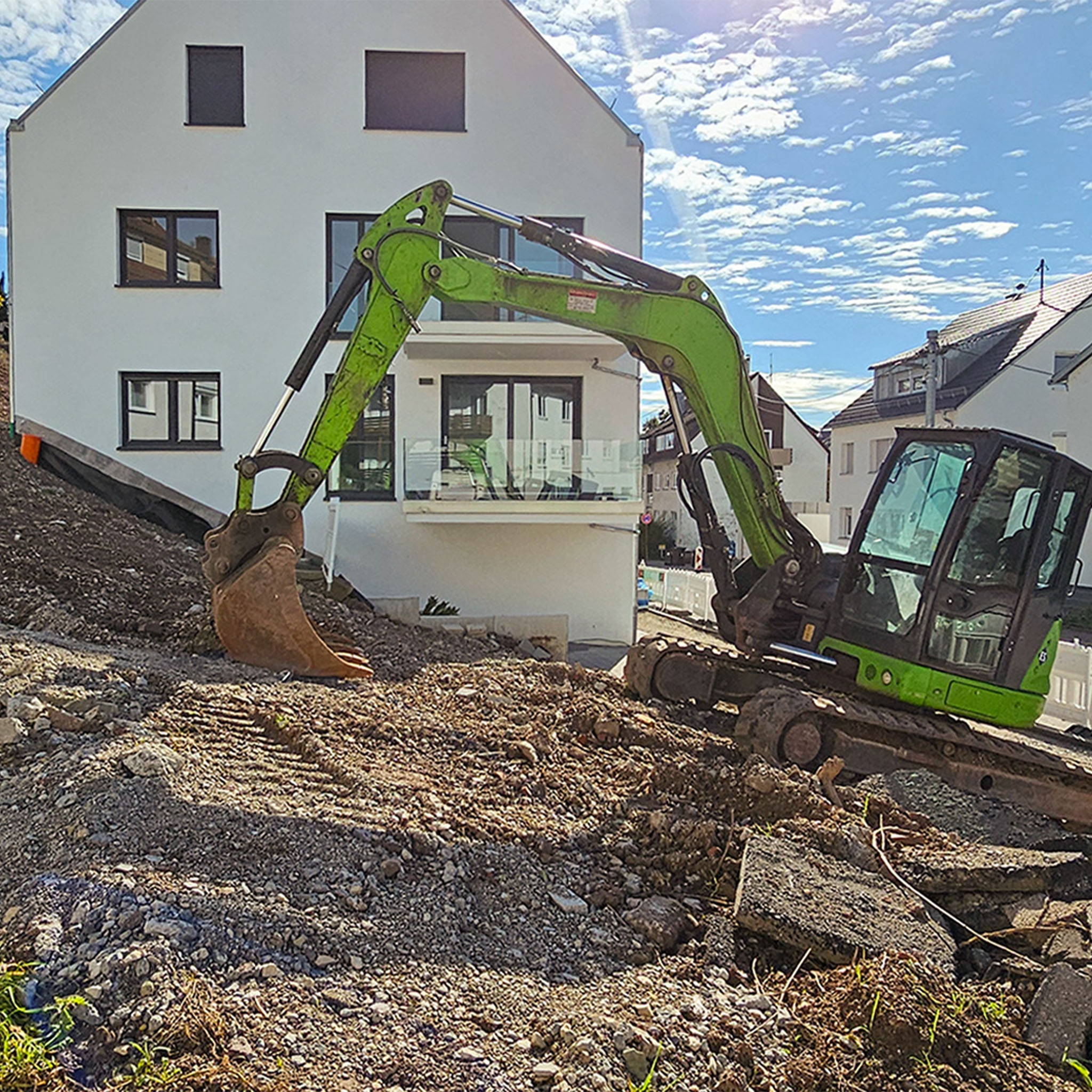 Erweiterte Außenarbeiten mit Erd- und Pflasterleistungen.